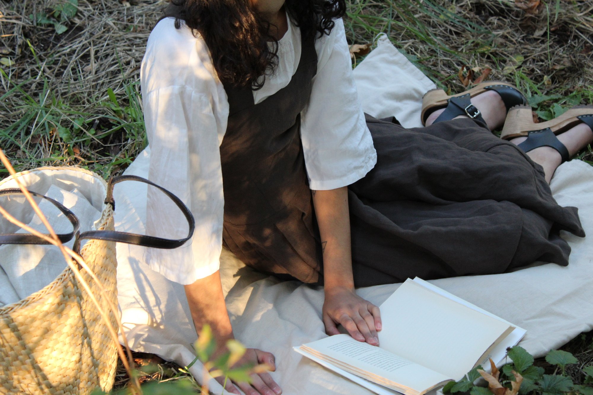 The AMÁL summer dress has a minimalist cut, and an edgy back with the cross-straps.The straps are adjustable. Closure on the back with a mother-of-pearl button.