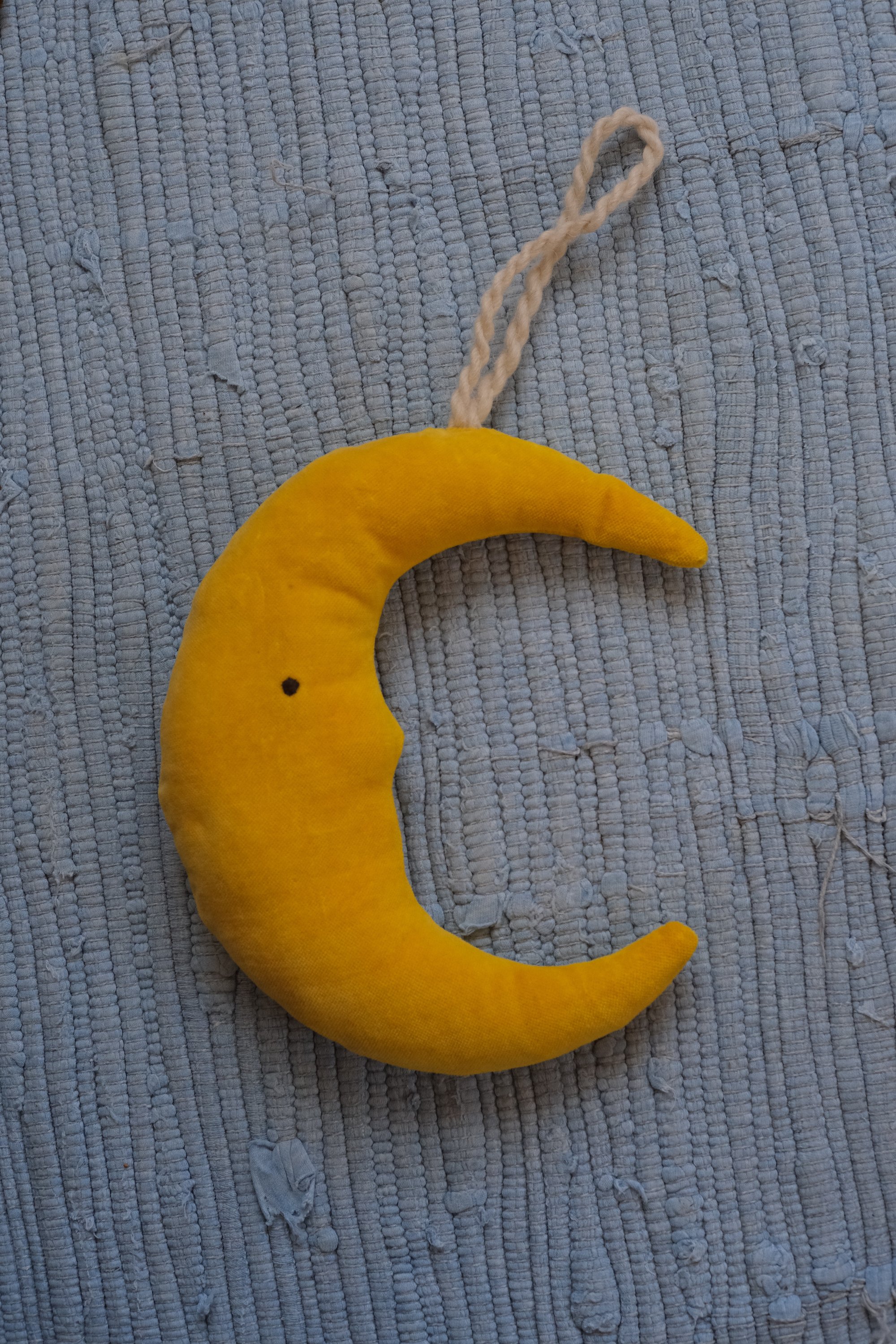 This velvet hanging moon is made in soft cotton velvet fabric which gives a lovely feel and is perfect to hang above your kid's bed or anywhere else.